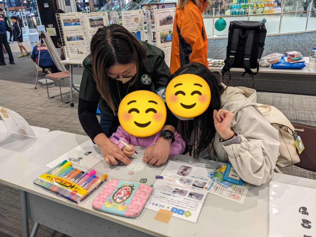 イベント開始前に、隊員も迷子札作りを楽しみました。