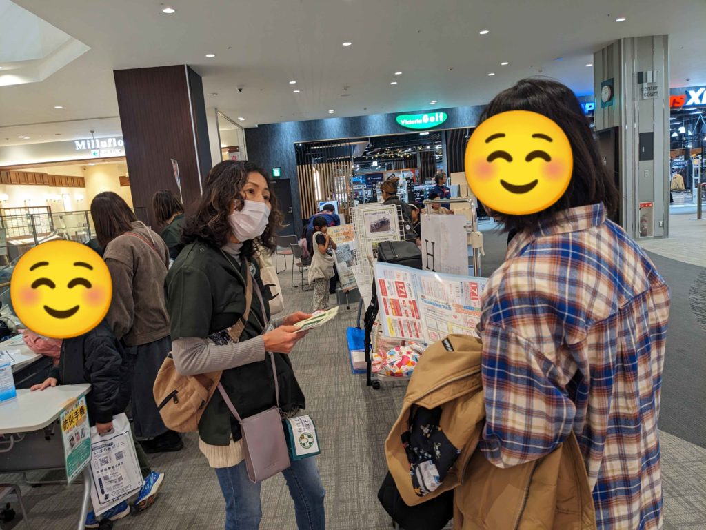 もしもの備えをお話しする中で、防災手帳を手に取っていただいた方もいました。