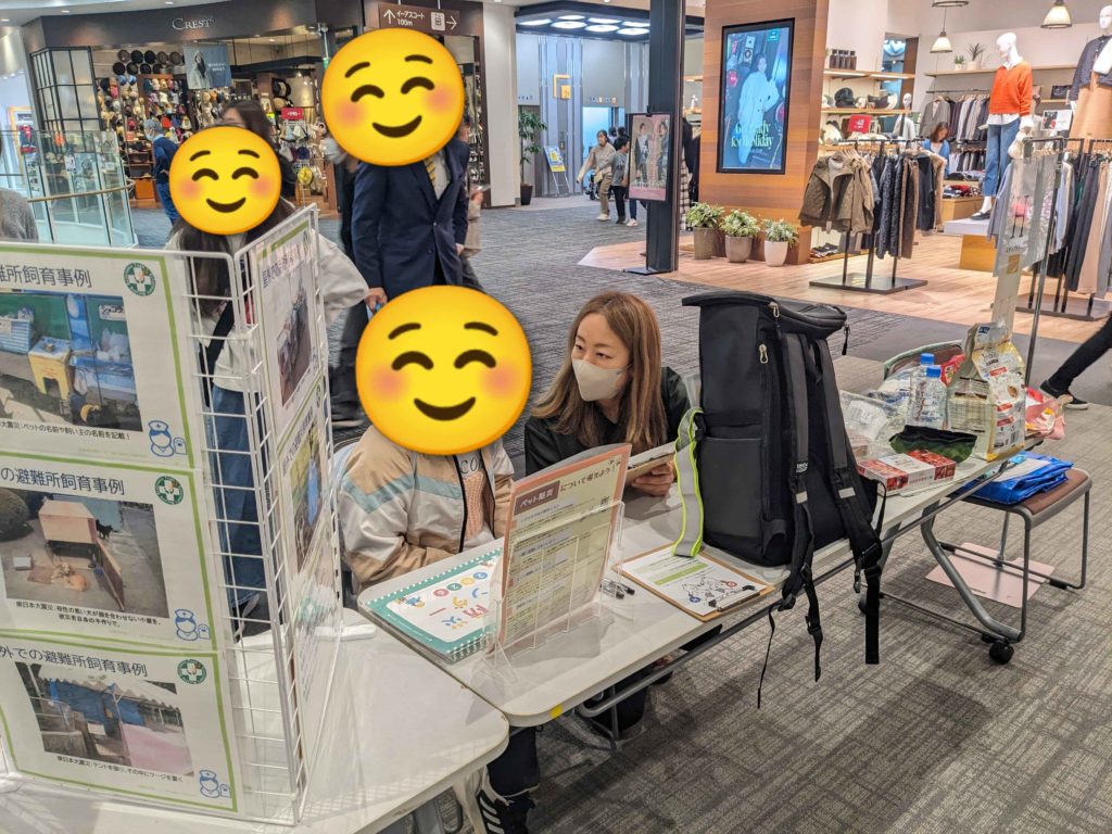 展示物を覗いてくれた方からは「避難所に入れなかったらどうしたらいい?」「ヤギはどこに行けばいい?」など、たくさんご質問をいただき、ひとつひとつ丁寧にお話ししました。